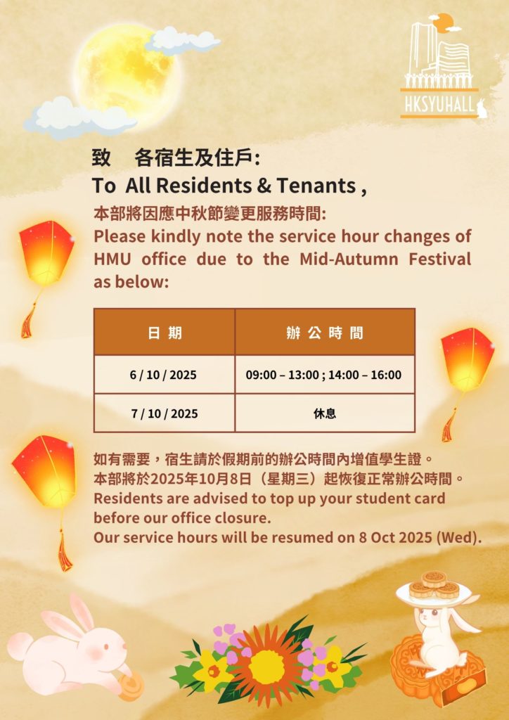 Application for Undergraduate Residence (Newly Enrolled Students – Mainland Gaokao and non-Jupas admission only) in the year 2025/26 is now OPEN.
